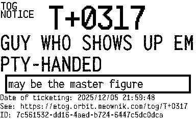 Orbit eTOG Listing Service: T+0317 GUY WHO SHOWS UP EMPTY-HANDED