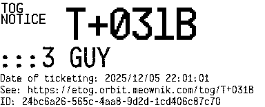 Orbit eTOG Listing Service: T+031B :::3 GUY