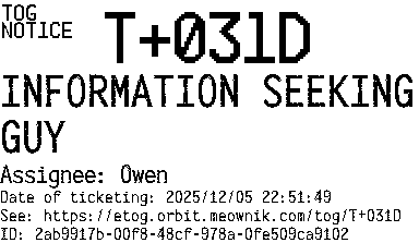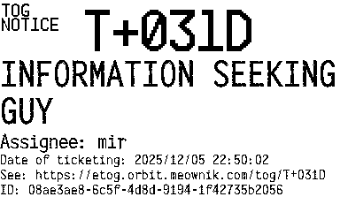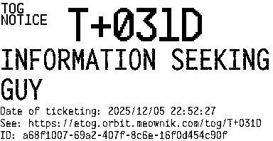 Orbit eTOG Listing Service: T+031D INFORMATION SEEKING GUY
