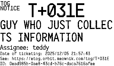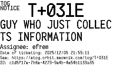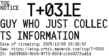 Orbit eTOG Listing Service: T+031E GUY WHO JUST COLLECTS INFORMATION