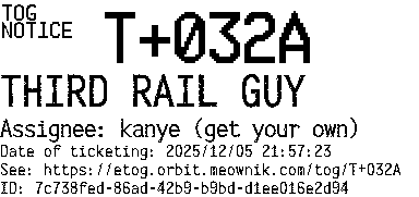 Orbit eTOG Listing Service: T+032A THIRD RAIL GUY