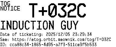 Orbit eTOG Listing Service: T+032C INDUCTION GUY