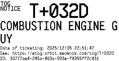 Orbit eTOG Listing Service: T+032D COMBUSTION ENGINE GUY