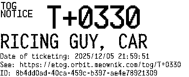 Orbit eTOG Listing Service: T+0330 RICING GUY, CAR