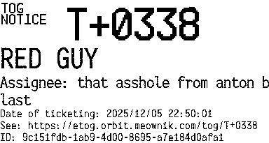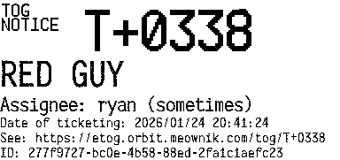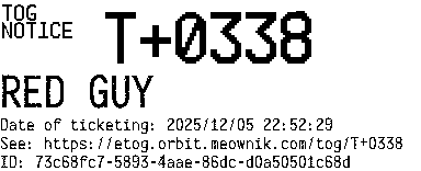 Orbit eTOG Listing Service: T+0338 RED GUY