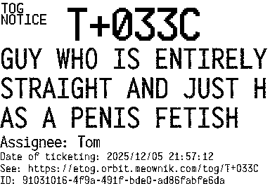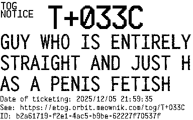 Orbit eTOG Listing Service: T+033C GUY WHO IS ENTIRELY STRAIGHT AND JUST HAS A PENIS FETISH
