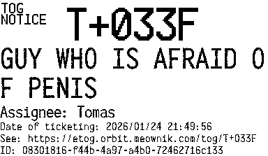 Orbit eTOG Listing Service: T+033F GUY WHO IS AFRAID OF PENIS