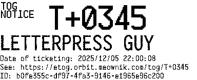 Orbit eTOG Listing Service: T+0345 LETTERPRESS GUY