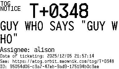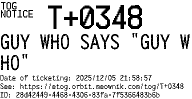 Orbit eTOG Listing Service: T+0348 GUY WHO SAYS "GUY WHO"