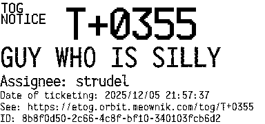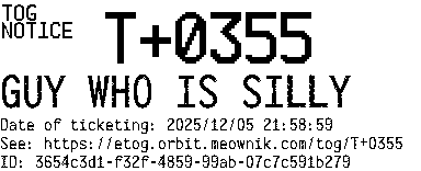 Orbit eTOG Listing Service: T+0355 GUY WHO IS SILLY