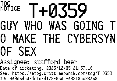 Orbit eTOG Listing Service: T+0359 GUY WHO WAS GOING TO MAKE THE CYBERSYN OF SEX