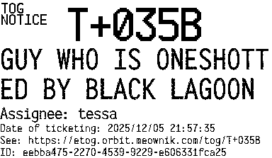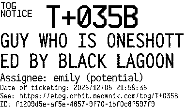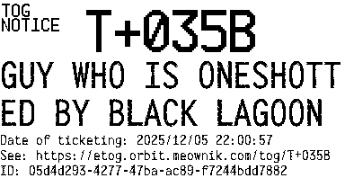 Orbit eTOG Listing Service: T+035B GUY WHO IS ONESHOTTED BY BLACK LAGOON