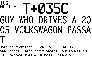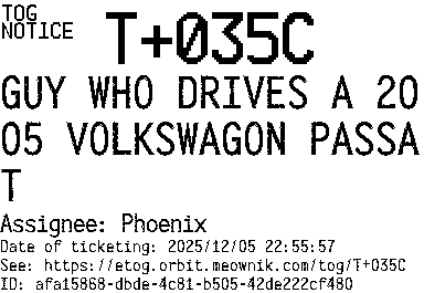Orbit eTOG Listing Service: T+035C GUY WHO DRIVES A 2005 VOLKSWAGON PASSAT