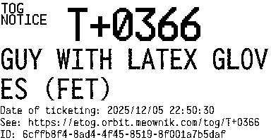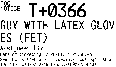Orbit eTOG Listing Service: T+0366 GUY WITH LATEX GLOVES (FET)