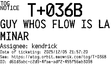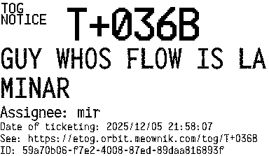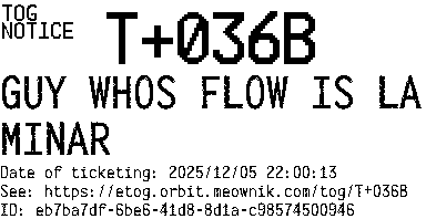 Orbit eTOG Listing Service: T+036B GUY WHOS FLOW IS LAMINAR