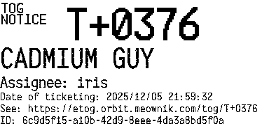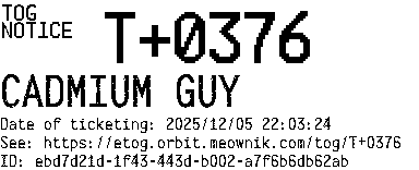 Orbit eTOG Listing Service: T+0376 CADMIUM GUY