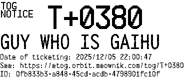 Orbit eTOG Listing Service: T+0380 GUY WHO IS GAIHU