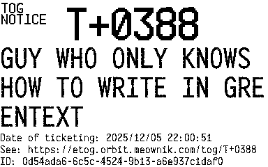Orbit eTOG Listing Service: T+0388 GUY WHO ONLY KNOWS HOW TO WRITE IN GREENTEXT
