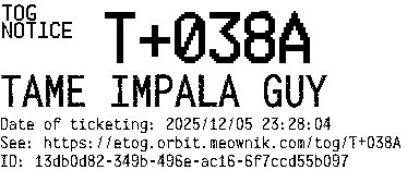 Orbit eTOG Listing Service: T+038A TAME IMPALA GUY