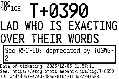 Description: See RFC-50; deprecated by TOGWG-2