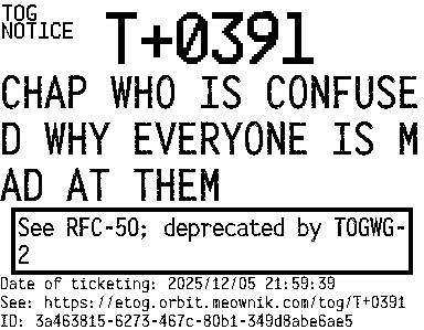 Orbit eTOG Listing Service: T+0391 CHAP WHO IS CONFUSED WHY EVERYONE IS MAD AT THEM