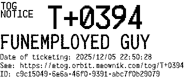 Orbit eTOG Listing Service: T+0394 FUNEMPLOYED GUY