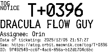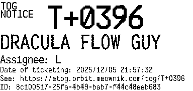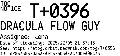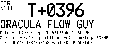Orbit eTOG Listing Service: T+0396 DRACULA FLOW GUY