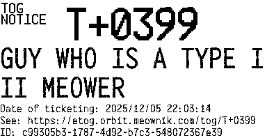 Orbit eTOG Listing Service: T+0399 GUY WHO IS A TYPE III MEOWER