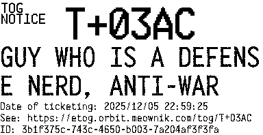 Orbit eTOG Listing Service: T+03AC GUY WHO IS A DEFENSE NERD, ANTI-WAR