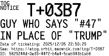 Orbit eTOG Listing Service: T+03B7 GUY WHO SAYS "#47" IN PLACE OF "TRUMP"
