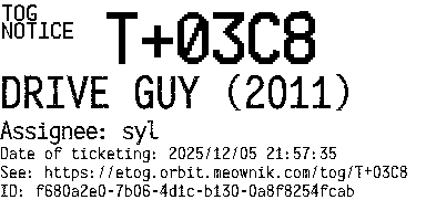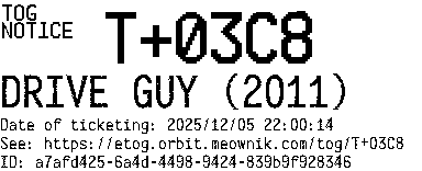 Orbit eTOG Listing Service: T+03C8 DRIVE GUY (2011)