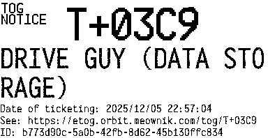 Orbit eTOG Listing Service: T+03C9 DRIVE GUY (DATA STORAGE)