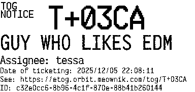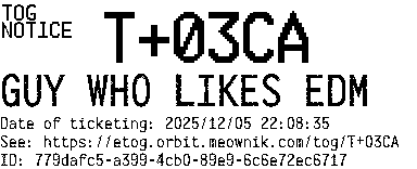Orbit eTOG Listing Service: T+03CA GUY WHO LIKES EDM