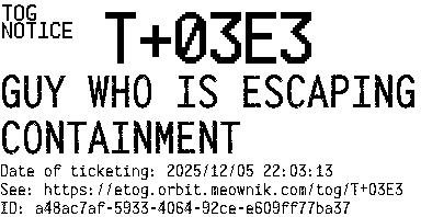 Orbit eTOG Listing Service: T+03E3 GUY WHO IS ESCAPING CONTAINMENT