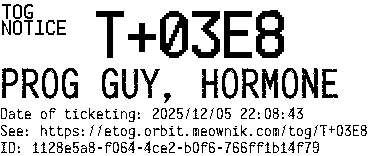 Orbit eTOG Listing Service: T+03E8 PROG GUY, HORMONE