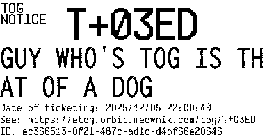 Orbit eTOG Listing Service: T+03ED GUY WHO'S TOG IS THAT OF A DOG
