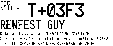 Orbit eTOG Listing Service: T+03F3 RENFEST GUY