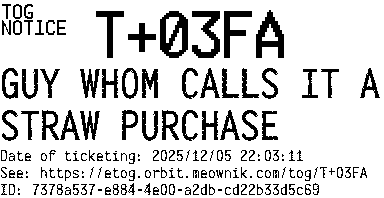 Orbit eTOG Listing Service: T+03FA GUY WHOM CALLS IT A STRAW PURCHASE