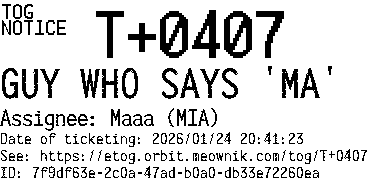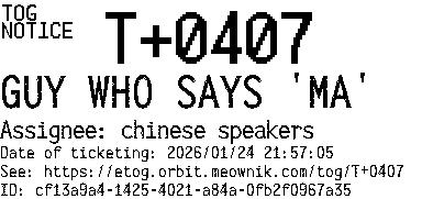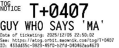 Orbit eTOG Listing Service: T+0407 GUY WHO SAYS 'MA'