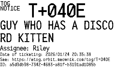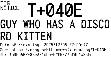 Orbit eTOG Listing Service: T+040E GUY WHO HAS A DISCORD KITTEN