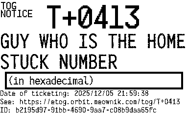 Orbit eTOG Listing Service: T+0413 GUY WHO IS THE HOMESTUCK NUMBER