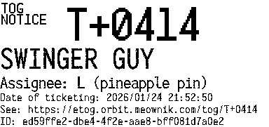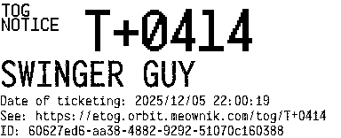 Orbit eTOG Listing Service: T+0414 SWINGER GUY
