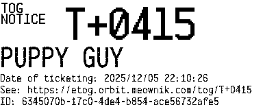 Orbit eTOG Listing Service: T+0415 PUPPY GUY