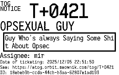 Orbit eTOG Listing Service: T+0421 OPSEXUAL GUY