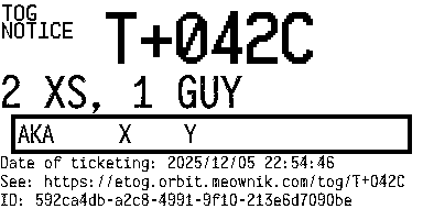 Orbit eTOG Listing Service: T+042C 2 XS, 1 GUY