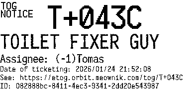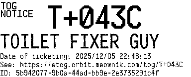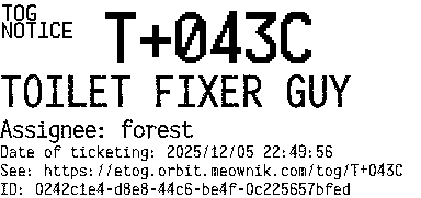 Orbit eTOG Listing Service: T+043C TOILET FIXER GUY