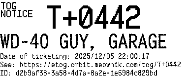 Orbit eTOG Listing Service: T+0442 WD-40 GUY, GARAGE