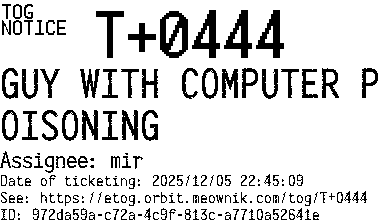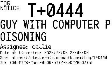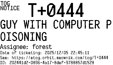 Orbit eTOG Listing Service: T+0444 GUY WITH COMPUTER POISONING