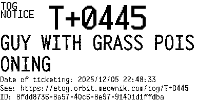 Orbit eTOG Listing Service: T+0445 GUY WITH GRASS POISONING