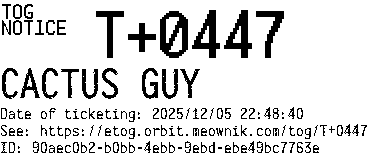 Orbit eTOG Listing Service: T+0447 CACTUS GUY